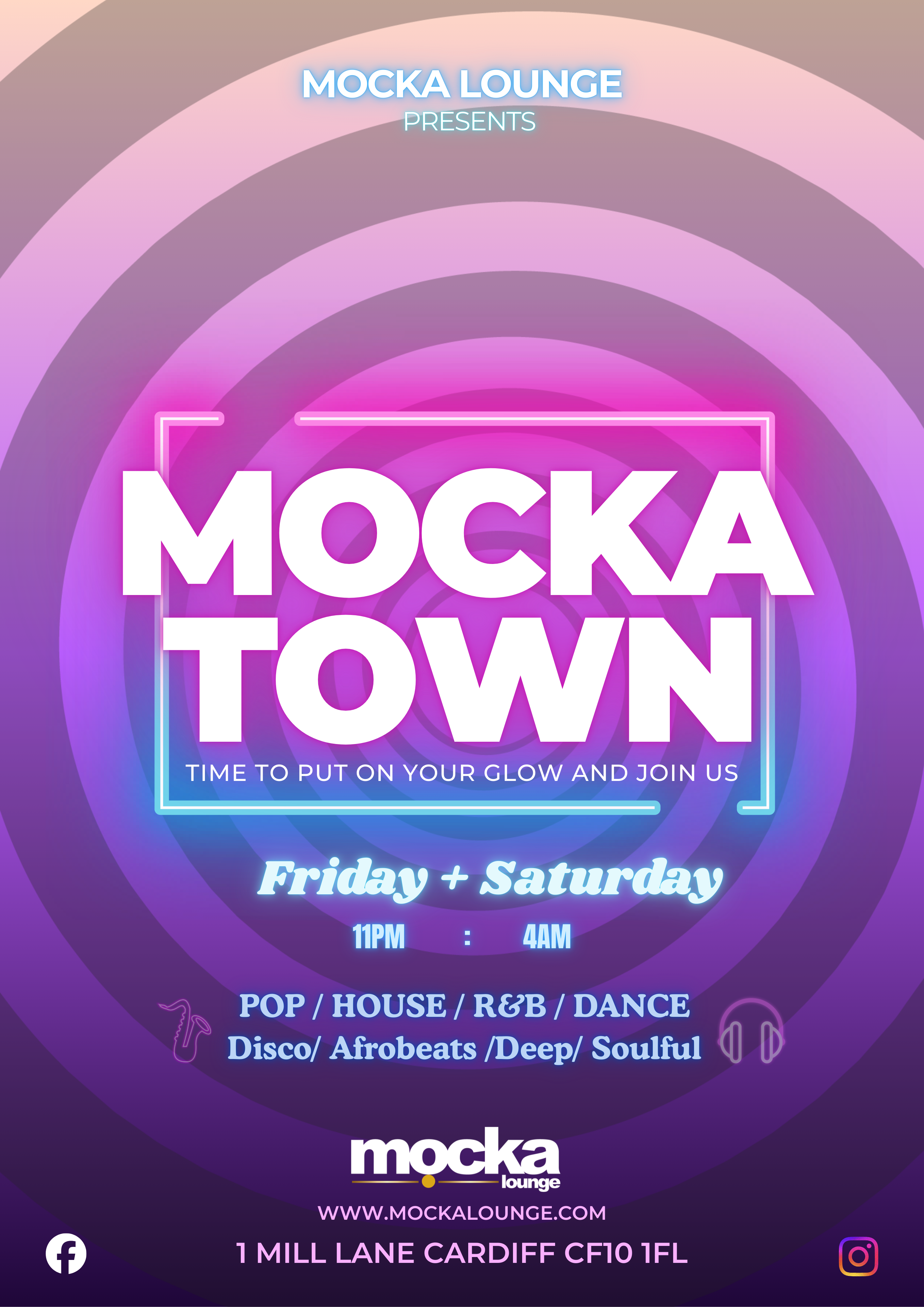 By day, we’re your stylish lounge in the heart of Cardiff. By night, the lights dim, the neon glows, and Mockatown takes over.